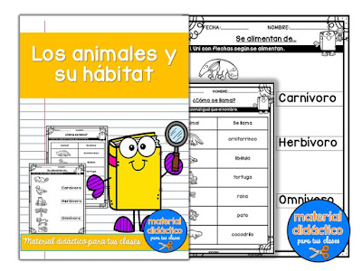 Te dejo un pack con los 5 ambientes y actividades para clasificar a los animales según su alimentación, trabajar vocabulario, identificarlos según su ambiente.
